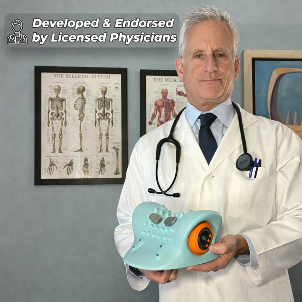 The Veliora™ Neck Massager combines advanced EMS therapy, deep massage, soothing heat, and effective stretching — all in one device you can use right at home.